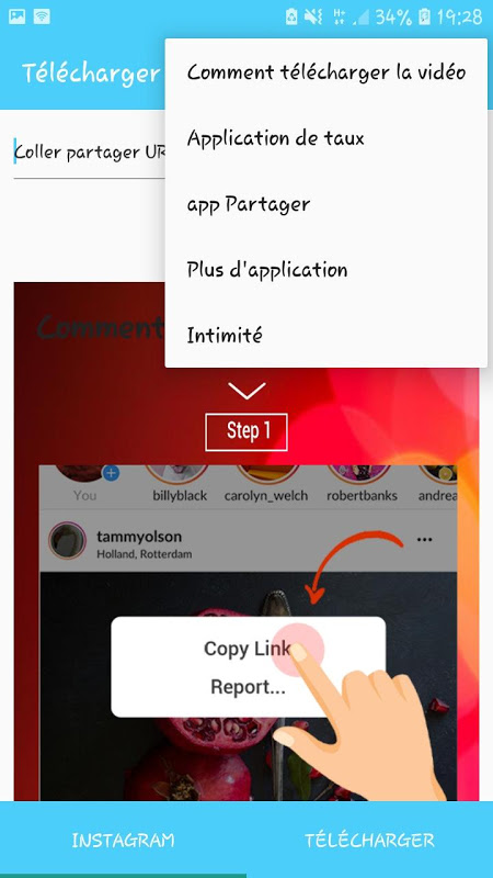 This downloader for Instagram stories is simple. The process is very simple. See an Instagram post you like? Tap on the 3-dots menu and select Copy Link. Switch to the app and paste it there. Your request is processed right away with the Instagram content saver.