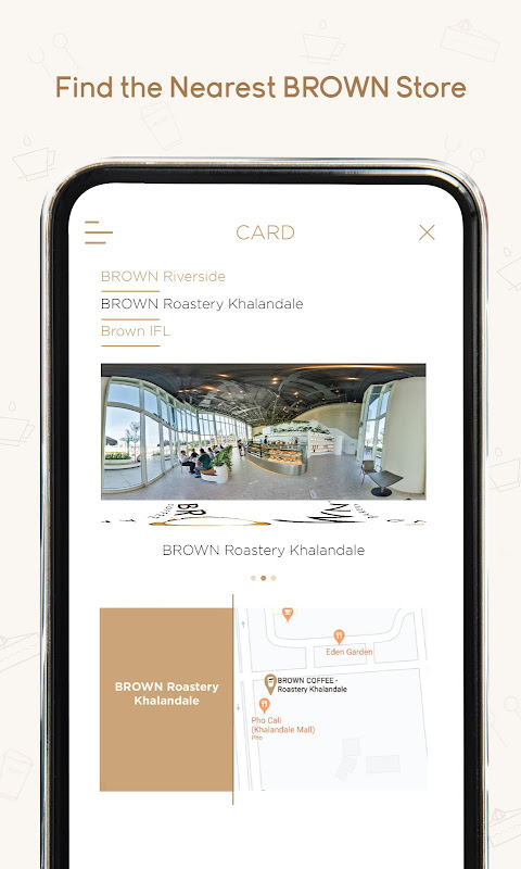 When youre on the move, the store locator app will help you get the nearest BROWN Coffee outlet. Always check the opening times, addresses and services before you go out.