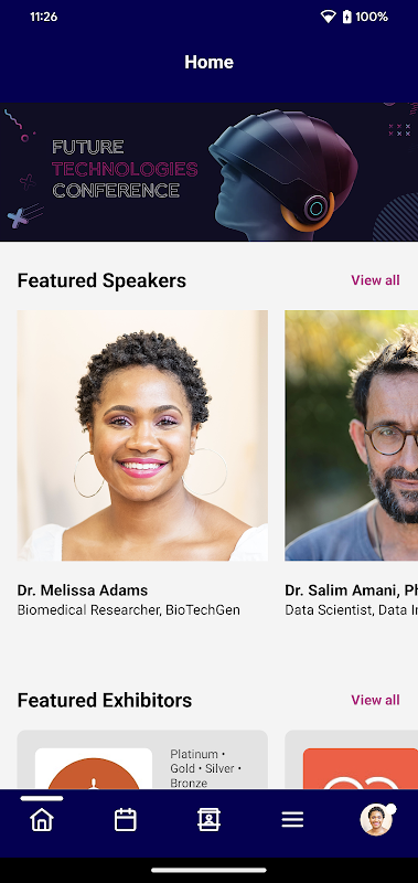 The app is your all-in-one event app for conferences by presenting keynotes, breakouts, workshops, and special sessions in one timeline. Every event is branded and configured by the organizer. Session pages include details about presenters, time blocks, and location maps. Exhibitors and sponsors receive a dedicated profile where you can access collateral and contact details without searching endlessly through paper brochures.