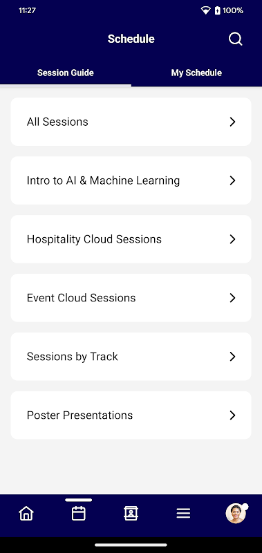 The My Agenda feature transforms how you plan event days. Check out the complete schedule, and hit the sessions that catch your eye to create your own timeline on the app. If two schedules coincide, conflict arises, and you can edit the schedule before creating it.