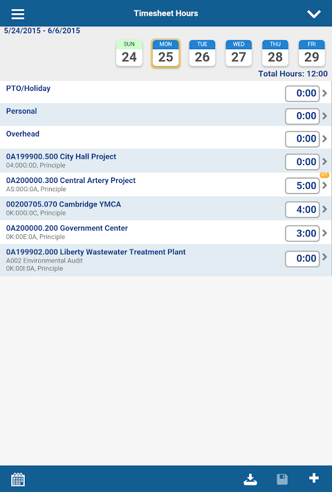 The app displays your most recent and favourite projects on the timesheet screen to save you from a minutes-long search-and-scroll every day. People can enter hours against labor codes and expense categories and validate them against budgets in real-time. In a few taps, they can submit them for approval. When you use validation against expected hours, it lets project managers know whether they are going to run out of hours.