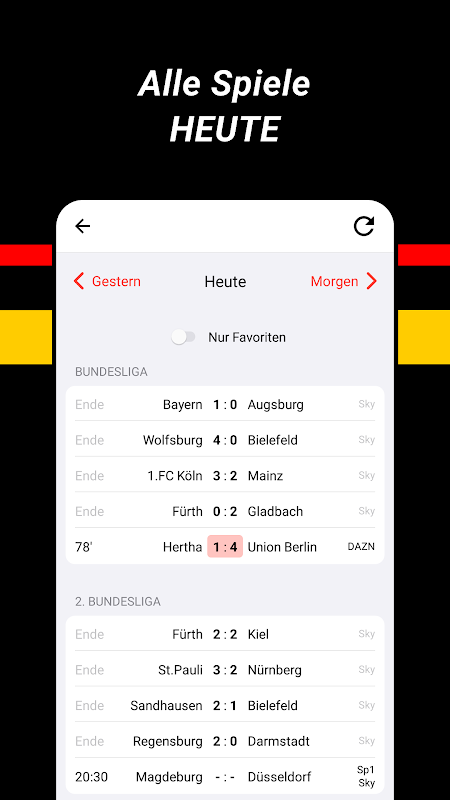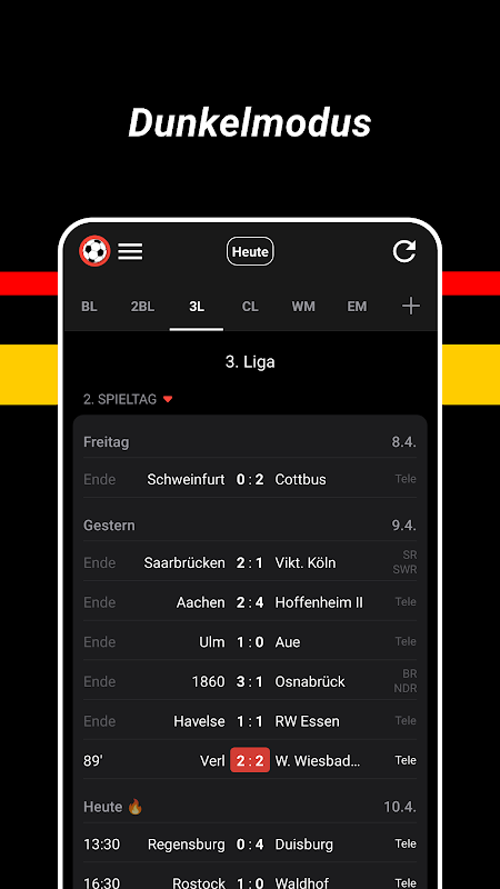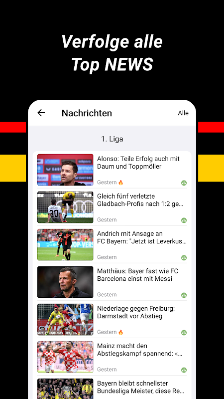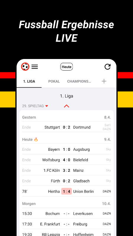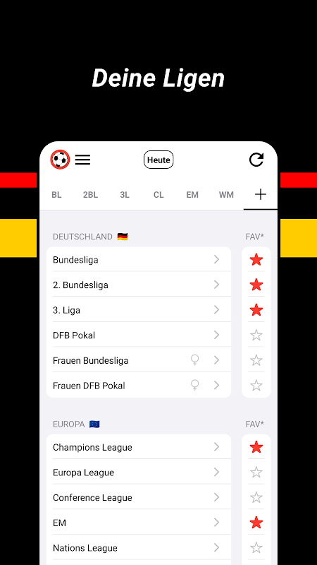 This app brings you the results in real time for many competitions. You are getting complete coverage of everything related to German football whether it is the 1st Bundesliga, the 2nd Bundesliga, the 3rd Liga or the DFB Cup. Live coverage is provided for European competitions, including the Europa League fixtures, Nations League, and more. You will receive direct notifications on your phone here for global events like the World Cup and Club World Cup in addition to Women’s football competitions such as Women’s Bundesliga and Women’s Champions League.