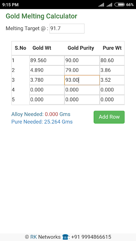 The number processing speed of the calculation engine is instantaneous and unlagged even when changing the figure values for comparisons. You can test many weights and purities in seconds to gain insight into their value range before buying. The application works well both as a gold buyer tool for professionals and a savvy reference for consumers to shield themselves against a low offer.