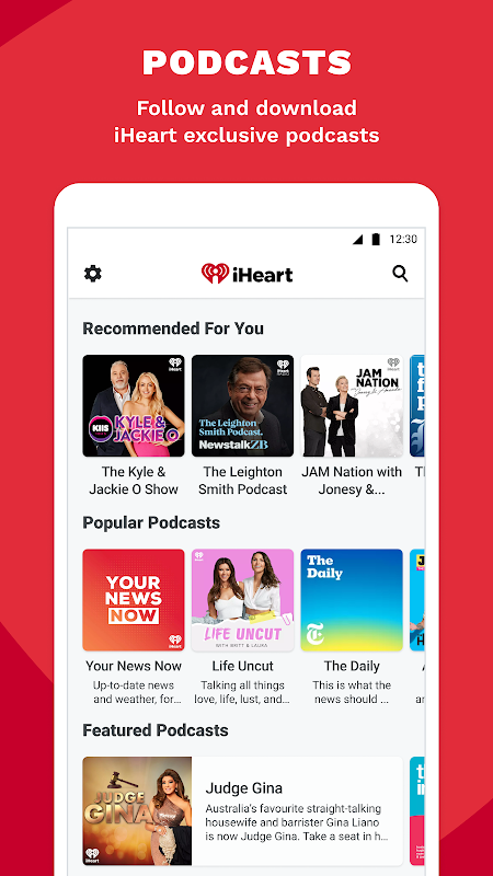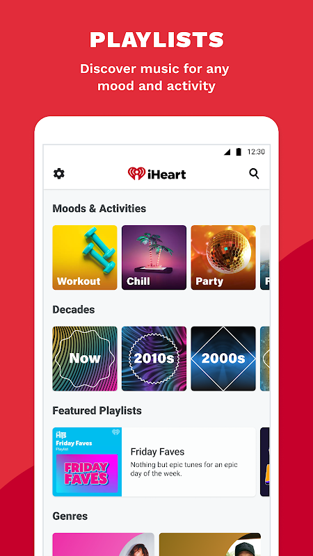 iHeart for Android is a complete audio streaming platform that provides your device with a digital radio tuner and allows you to create playlists and listen to podcasts.