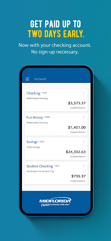 With the app, you can manage all your accounts, not just your MIDFLORIDA account. “Transaction History” and external bank balances can be viewed in one place. you can easily view Everything on one page without toggling to an app. Mobile check deposit allows you to take pictures of checks for immediate processing. Fund transfer capability helps you seamlessly transfer funds between internal accounts and external accounts. The “bill pay” feature takes care of recurring payments, and the direct deposit setup even includes the option of accessing paychecks early, which is a real advantage for members living paycheck to paycheck.