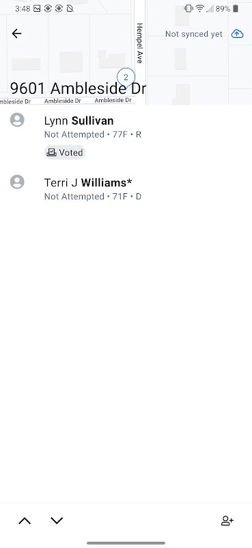 This is where the value of the app really is for «grassroots organizing»: entry of data while offline. Even if you lose cell service and have to knock doors all afternoon, you can still log. All information is stored locally in the app and automatically synced back up to the VAN database once you reconnect via wifi or cellular. Every voter record provides access to scripts, complete contact history and a space to add notes about your chats. If the person is not on your list, the search function will allow you to retrieve their details from the database on the doorstep.