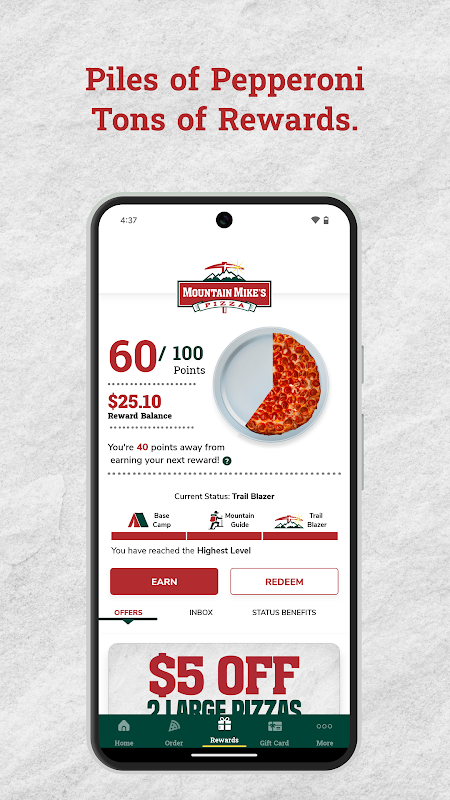 However, the real highlight here is the Mountain Rewards®, a level system that treats every dollar you spend like points. For every dollar that you spend, you earn 1 point. When you accumulate 100 points, you will receive a $10 reward which is redeemable. The program does not stop there; the higher you climb, the more personalized exclusive offers you receive, early menu access before the public, a birthday bonus, a friend-referring bonus, and a surprise monthly reward that keeps regulars returning. This online choreographer directs you to pizza that fits your budget. The more a user places a pizza order, the more the user takes home goodies.