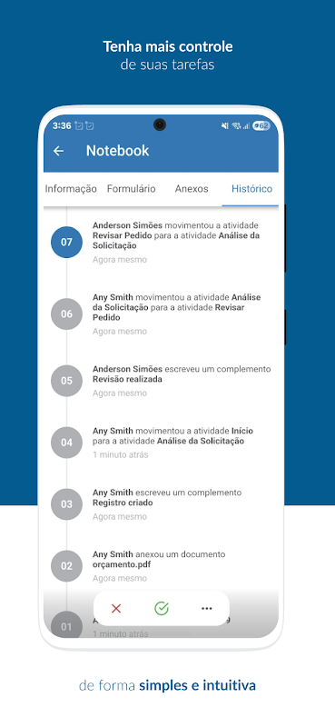 By integrating with the TOTVS Fluig Platform, your existing workflow management system easily becomes mobile. You do not need to bother about duplicate logins, syncing issues or learning a new system. Everything operates on the same infrastructure that your organization trusts;