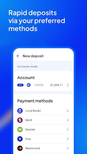You can use the app and access MetaTrader 4, MetaTrader 5, and OctaTrader, which is the proprietary platform offering TradingView charts, the most advanced technical analysis tools. You will have access to a variety of trading instruments like forex pairs, international stocks, precious metals, and 35 crypto pairs. The Deposit Control tool assists in risk management by imposing limits on deposits, while real-time price alerts inform you of market movements.