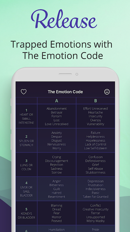 This app combines the approaches of “The Emotion Code” and The Body Code in one digital app. The interface offers a simple, modern look. It has dark mode support and browsing through detailed «mind maps». They’re used as guides to identify imbalances in the energy systems of our bodies. They help with pinpointing everything from «trapped emotions» to structural ones.