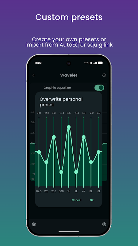 In addition to AutoEq, Wavelet comes with professional processing tools that most audiophile equalizer apps for Android do not offer. If you like to adjust your device manually, you can make use of the nine-band graphic equalizer. A limiter with automatic preamp adjustment will result in no clipping and distortion when you boost.