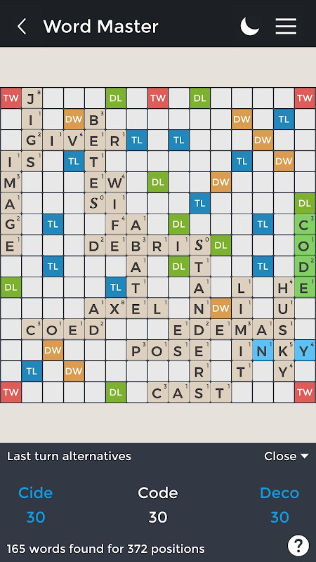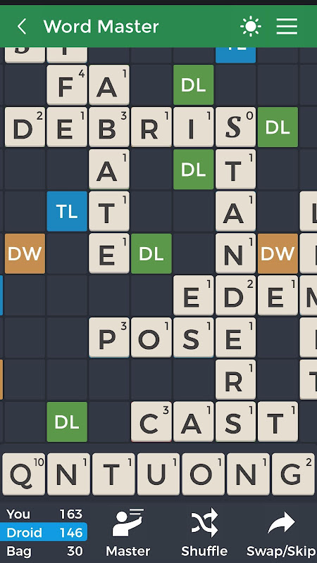 Download Word Master and outsmart AI! Get Masters suggestions and the Bad Draw Helper to optimize every rack. Play offline or Pass N Play with your friends. Track your climb to success in 17 languages.