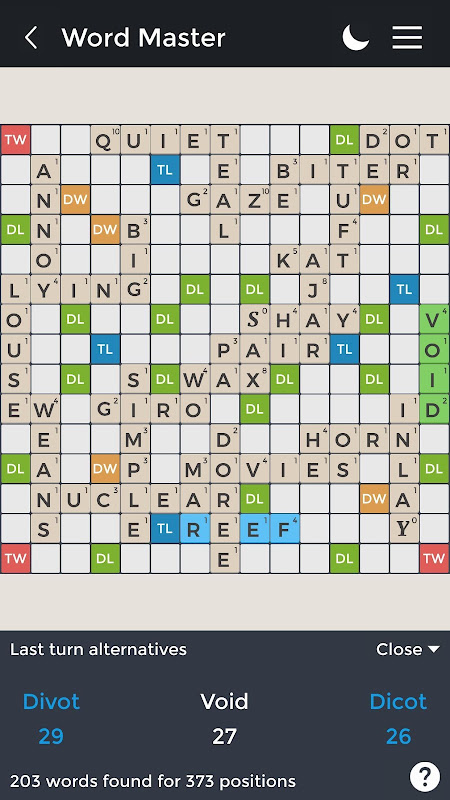 The challenge mode strips the luck away revealing pure strategy weakness. Through a comprehensive analysis, the scoring optimization system compares your moves to more optimal mathematical plays making you rethink your placement. This mode is helpful to look for high-value combinations by scanning the entire board. It doesnt force you to play the first valid word. Instead, you will play words that use Double Word and Triple Letter combos at the same time.