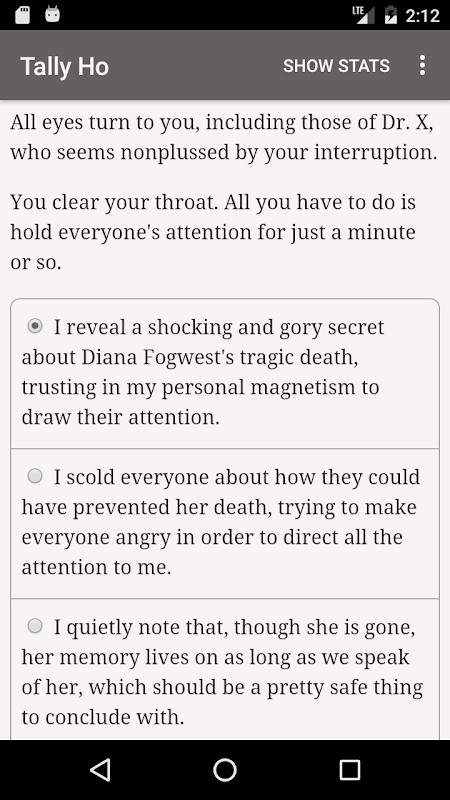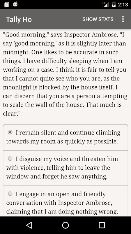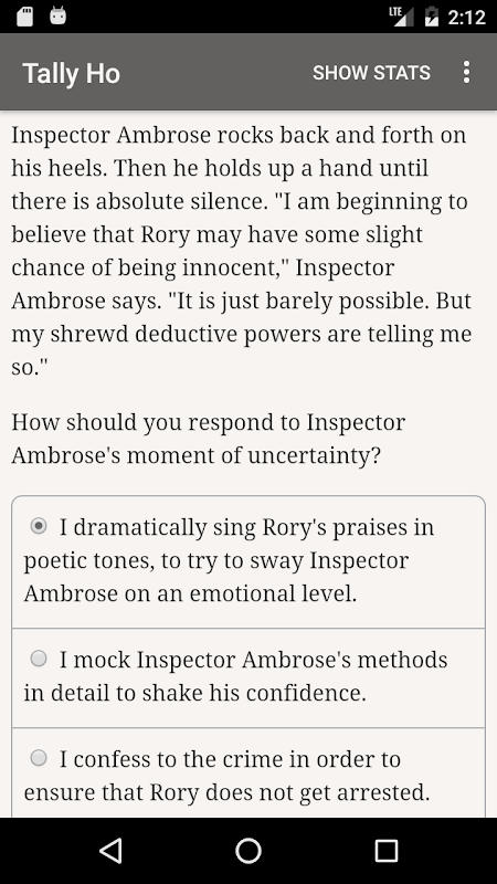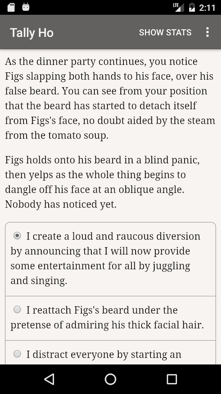 Tally Ho for Android is a digital remake of an asymmetrical board game. One player controls the woodland creatures, while the other controls a band of hunters. The two sides fight for control of neutral wildlife and against each other on a tile-based map.